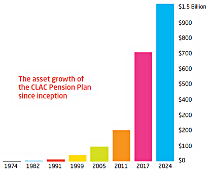 The CLAC Pension Plan is a defined contribution, multi-employer, registered pension plan. The plan was established in 1974 and has grown considerably, with $1.5 billion in assets (as of December 31, 2024). It currently has over 122,300 individual account holders and approximately 665 participating employers, representing a variety of industries across the country.