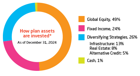 Assets are invested by best-in-class managers who regularly research the markets and invest in high-quality, well-managed companies. The investment managers’ performance is monitored by a board of trustees and the plan’s consultant to ensure it continues to be in-line with expectations.
